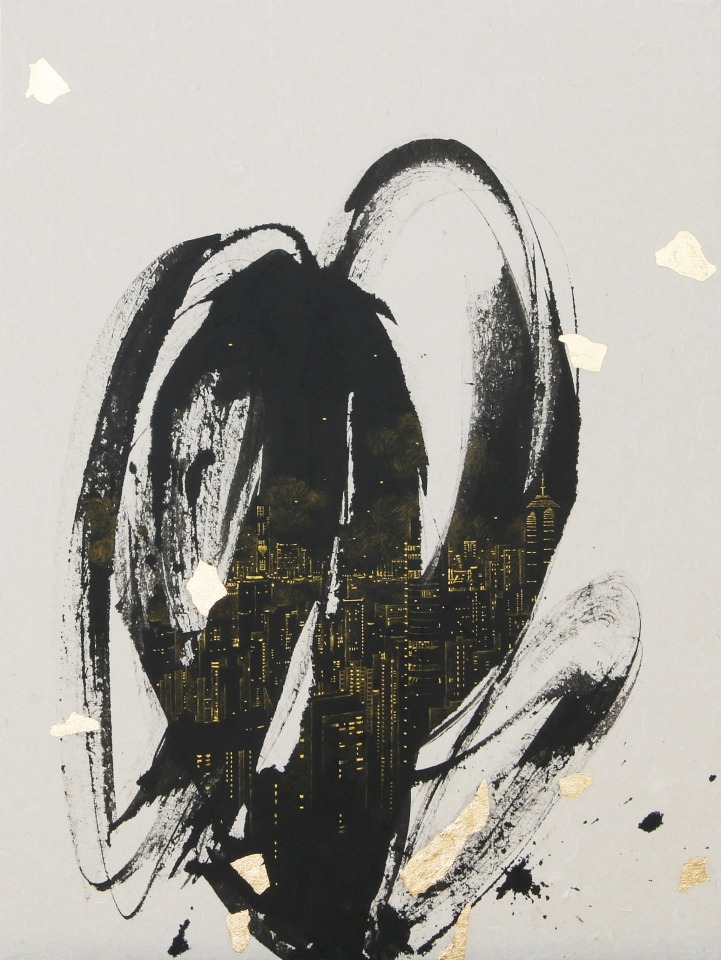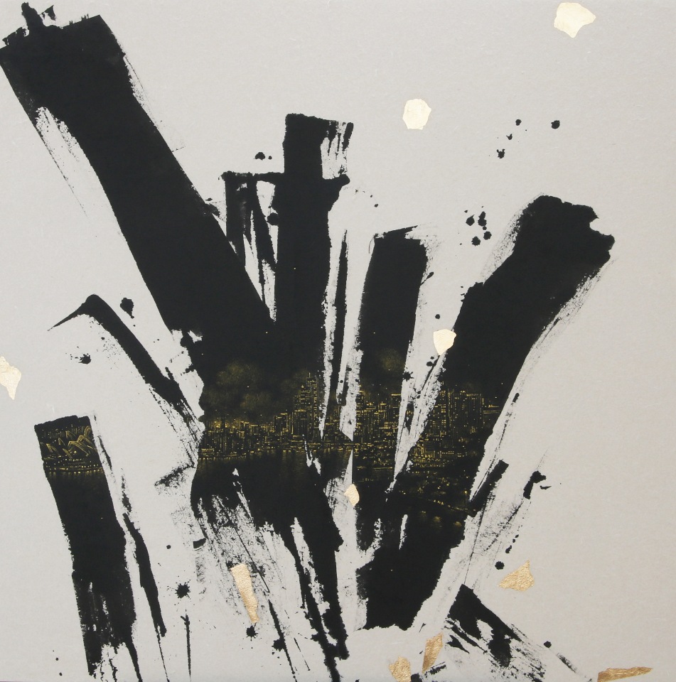 Park's latest collection is a continuation of her previous exhibitions at REDSEA Gallery, but it is also a new emergence for the artist. As her painting style evolves, focusing more intensely on the Chinese ink brushstrokes and incorporating new materials such as gold leaf, Park has also taken on a new challenge – sculpture. The exhibition will feature four wall-mounted sculptures constructed of birch plywood and Park's signature black ink. Leaving the cityscapes behind, the new works concentrate entirely on the expression of the brushstroke in three dimensions. Of her decision to create sculpture, Park says:
