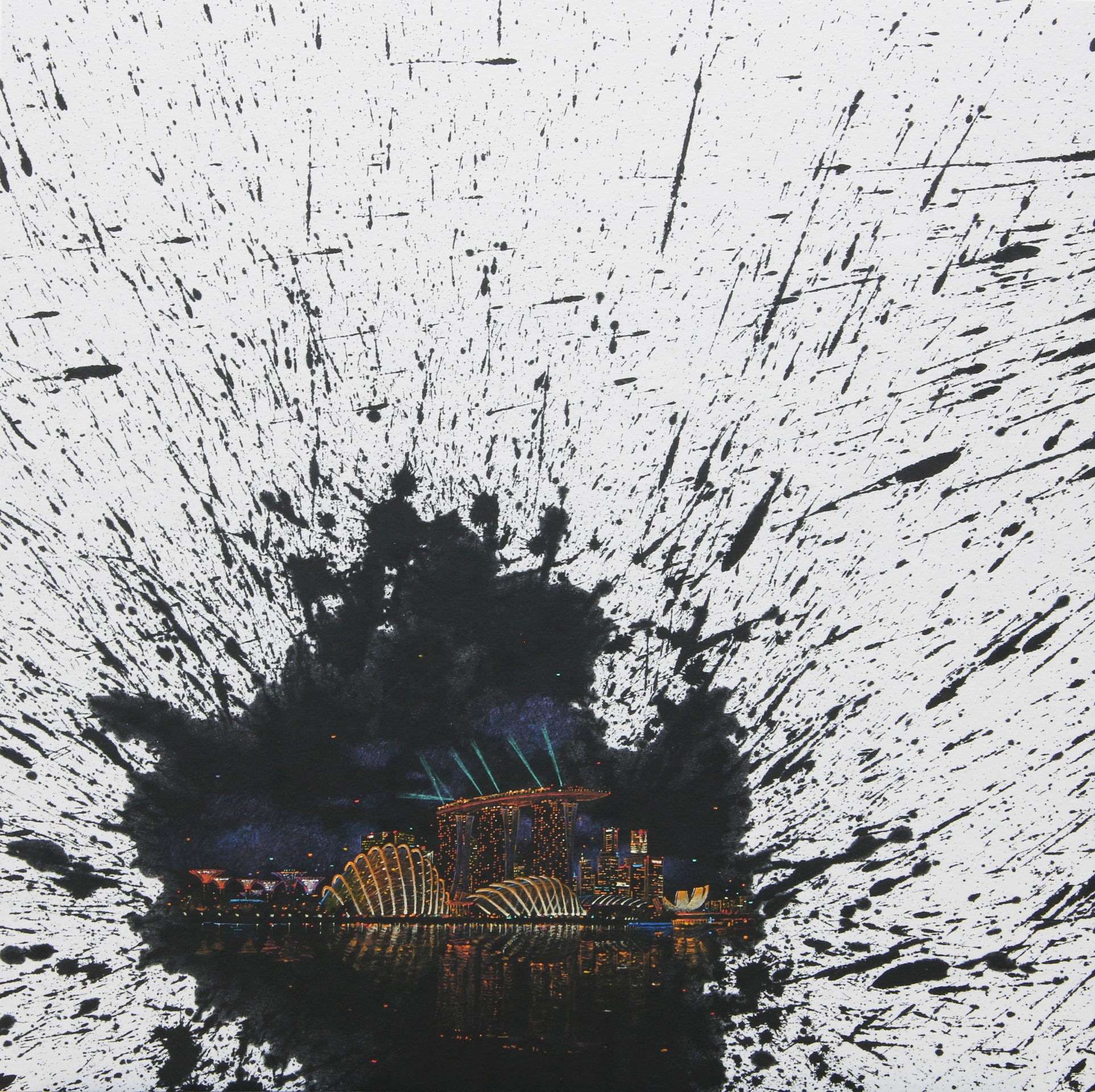 Park's distinctive style blends large brushstrokes and splatters of ink with detailed depictions of urban landscapes at night. While capturing the excitement and magic of various cities – among these, for example, are Hong Kong, Singapore, London and New York – the works also reveal a more subdued, contemplative narrative. Through her paintings, Park hints at a paradox of urban life – being surrounded by thousands of people, yet feeling utterly alone. The artist states: