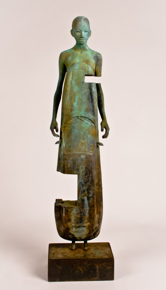 Jesus Curiá's practice is concerned with capturing the essence of the human being. His sculptures blend figurative elements – often heads and hands – with abstracted bodies in an attempt to express tradition, modernity and ethnic culture, which have remained the foundation of his approach throughout the years. Curiá's characters, which have an almost ancient quality, are a reflection of the artist's ideas and emotions toward the contemporary world – raising questions of identity, community and globalisation.