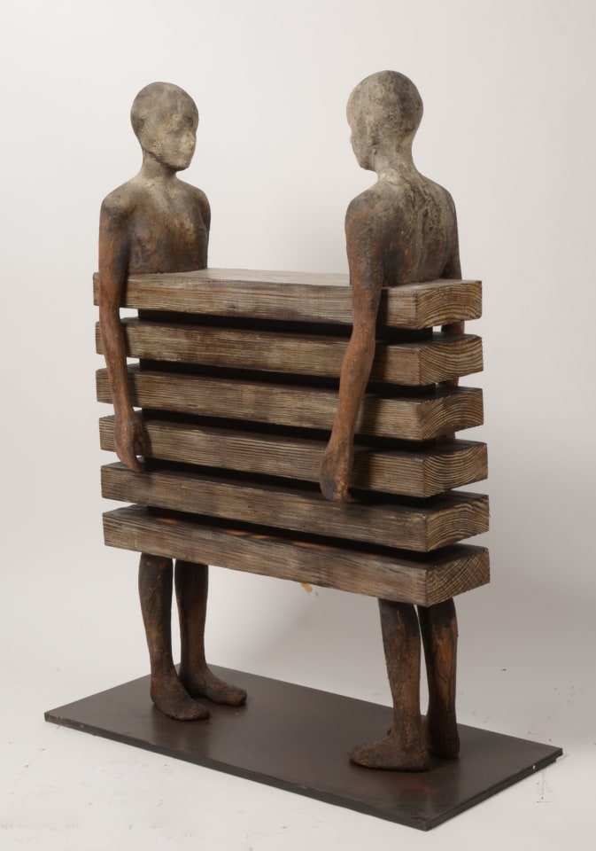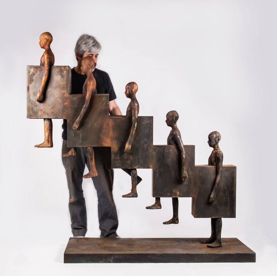 Curiá's choice of materials is of equal importance in understanding his work. Though primarily working in bronze, the artist's thoughtful integration of wood, stone, concrete and resin is directly related to the idea he wishes to express through each sculpture. Echoing the complexity of man, Curia's blending of soft and hard, warm and cold materials signifies the opposing characteristics found in all of us.
