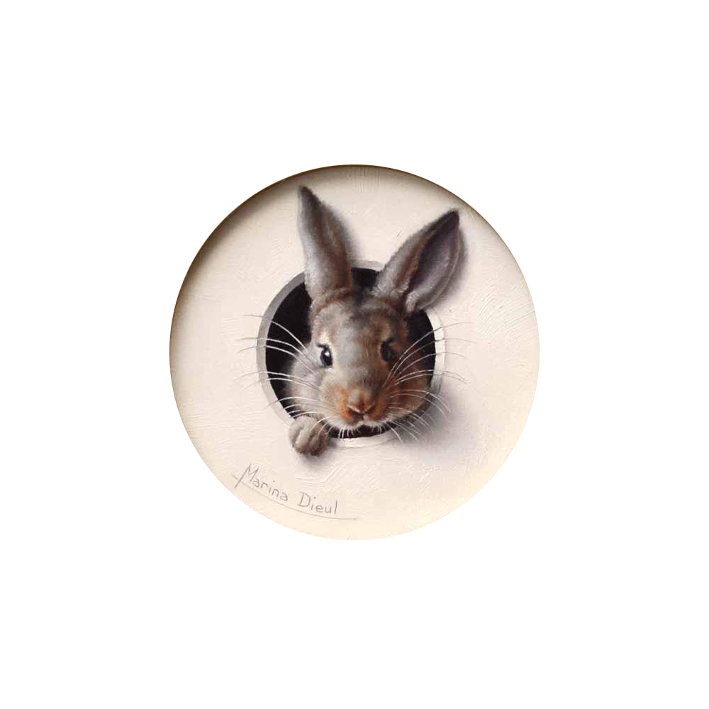 Marina Dieul is known for her animals and figures paintings in trompe-l'oeil style, full of humour and poetry. She works in her Montreal studio surrounded by the many cats she fosters for a no-kill shelter in Montreal.