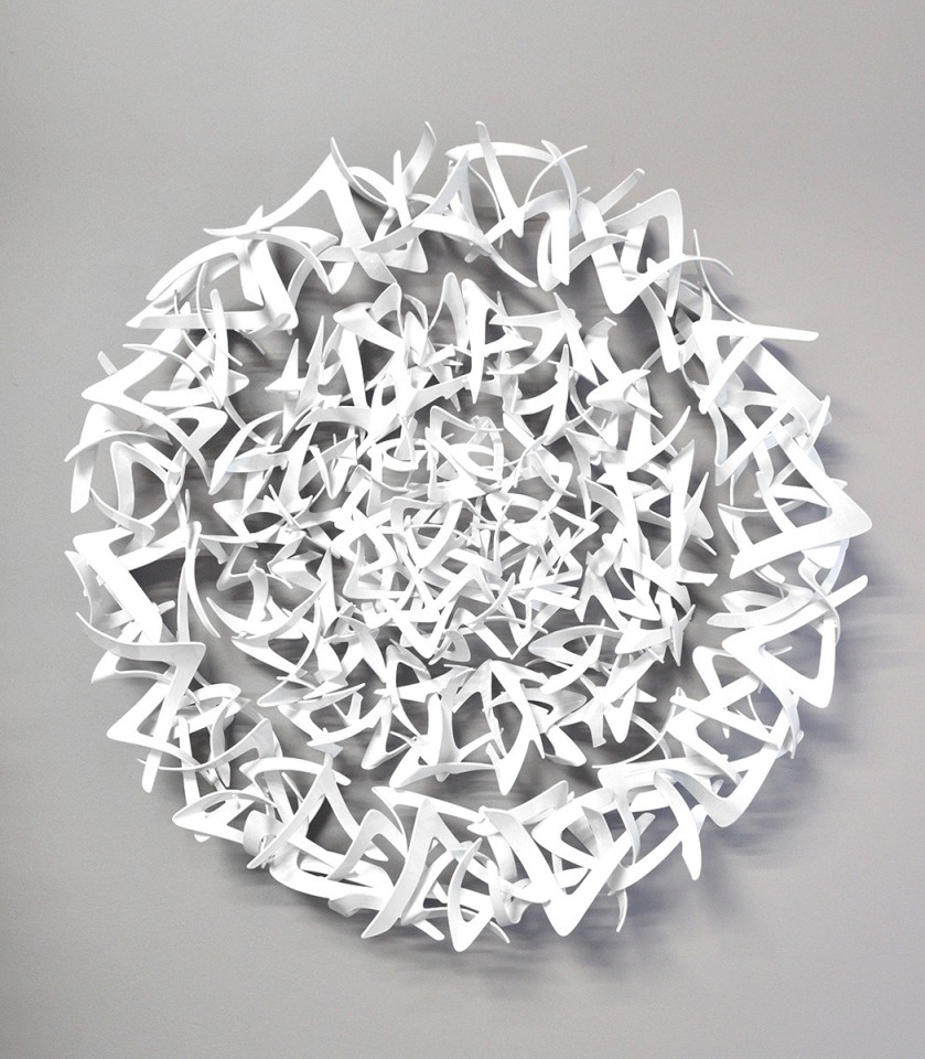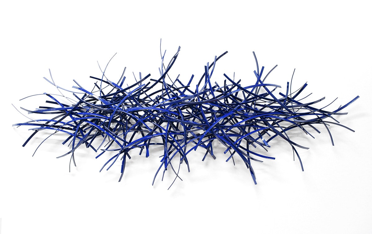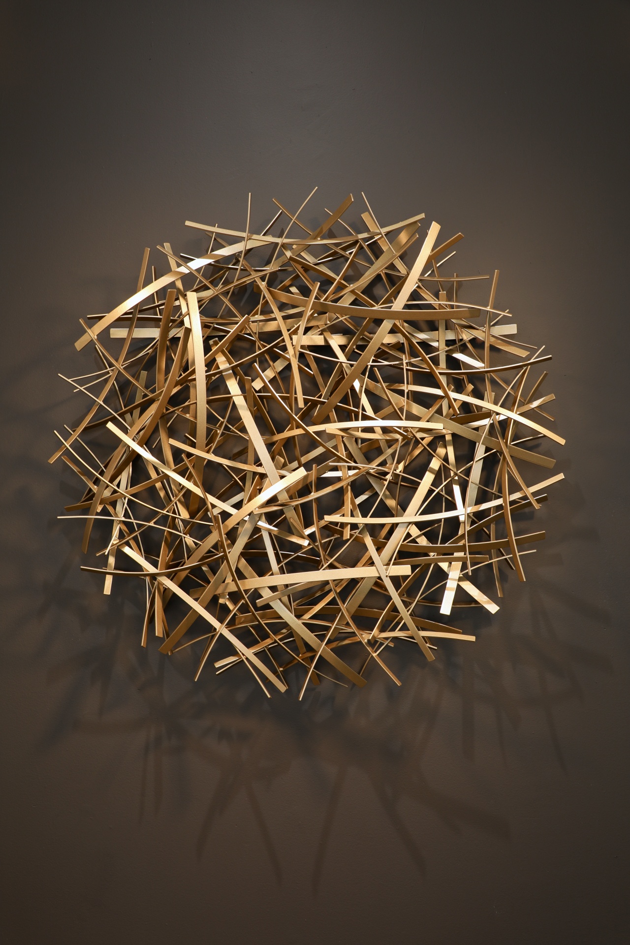 The contrasts of nature and industry, light and shadow, chaos and order are themes found throughout Devine’s body of work. Pared-down organic shapes are formed out of sheet and solid materials and welded together in harmonious accord, often allowing the metal to appear as light as paper. These contrasts, plus the relationships of patterns and boundaries, address Devine’s desire to contain chaos and push out the discord of an information-saturated culture.