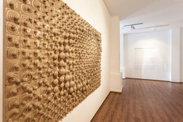Cha Jong Rye lets her chosen material, wood, steer her practice, unveiling her inner thoughts as it takes shape through her hands. Working with it as if it were clay or paint, she layers and meticulously sands hundreds of delicate wood pieces into aesthetic contours and shapes that seemingly have no beginning or end. The resulting monumental, self-standing or wall-mounted, works of art have a natural fluidity and energy that symbolise Cha Jong Rye's philosophy of the landscape of our individual lives and the world around us. Presenting her sculptures in the present tense, as something living and moving, rather than as complete reality, her work also calls on the ideas of creation, infinity and eternity.