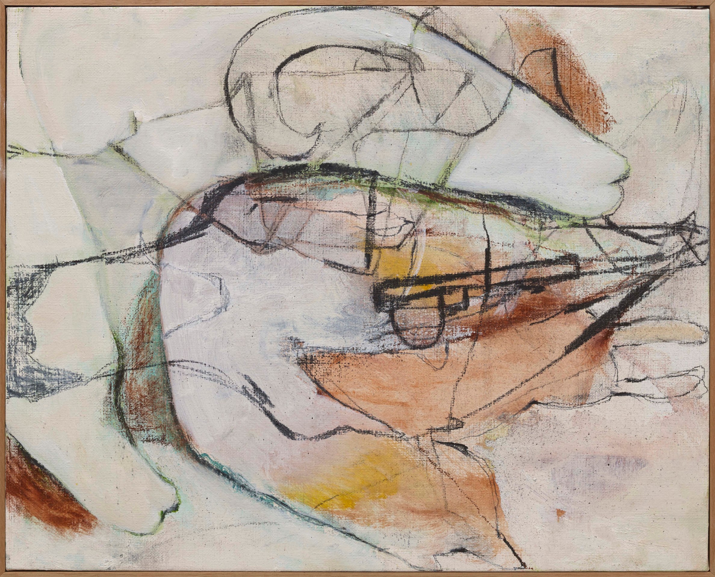 A visceral follower of the powerful women who dominate the world of feminist artists, such as Cecily Brown and Tracy Emin, Janssen, invites the viewer to witness her sometimes chaotic rebirth thru a palpable authenticity. Earthy clay-like colour tones of ochre, umber and mustard mixed with vivid shades of blues and greens are like music to the eyes to evoke a softer remeniscence of the cave-like drawings of both Willem and Elaine de Kooning.